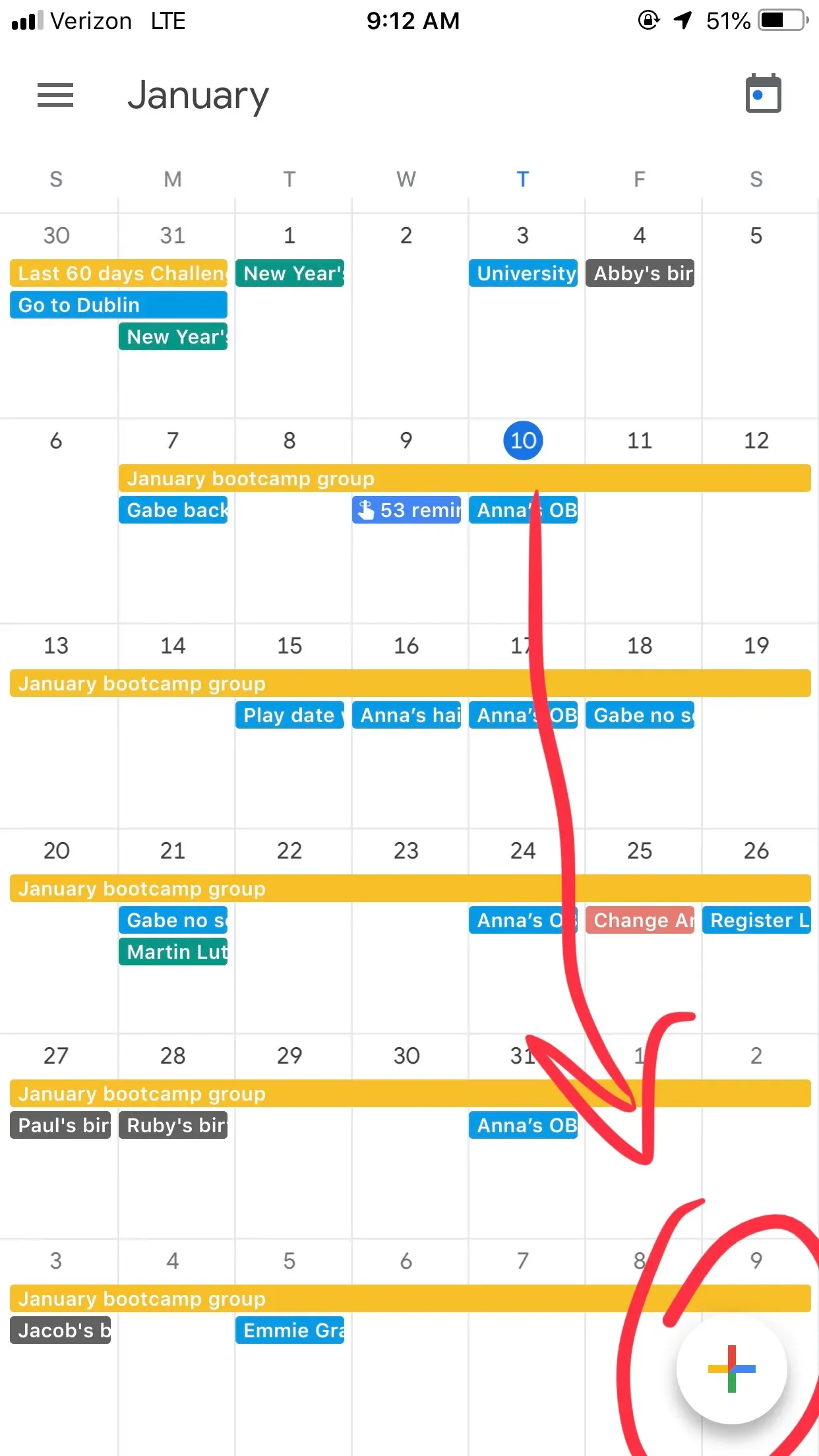 So how does it work? Entering events into Google Calendar is so easy and I’ll show you how to do that using the app on your phone (it’s just as simple from your computer): 1. When in month view, tap the day you want to enter an event. Then tap the plus sign at the bottom right corner