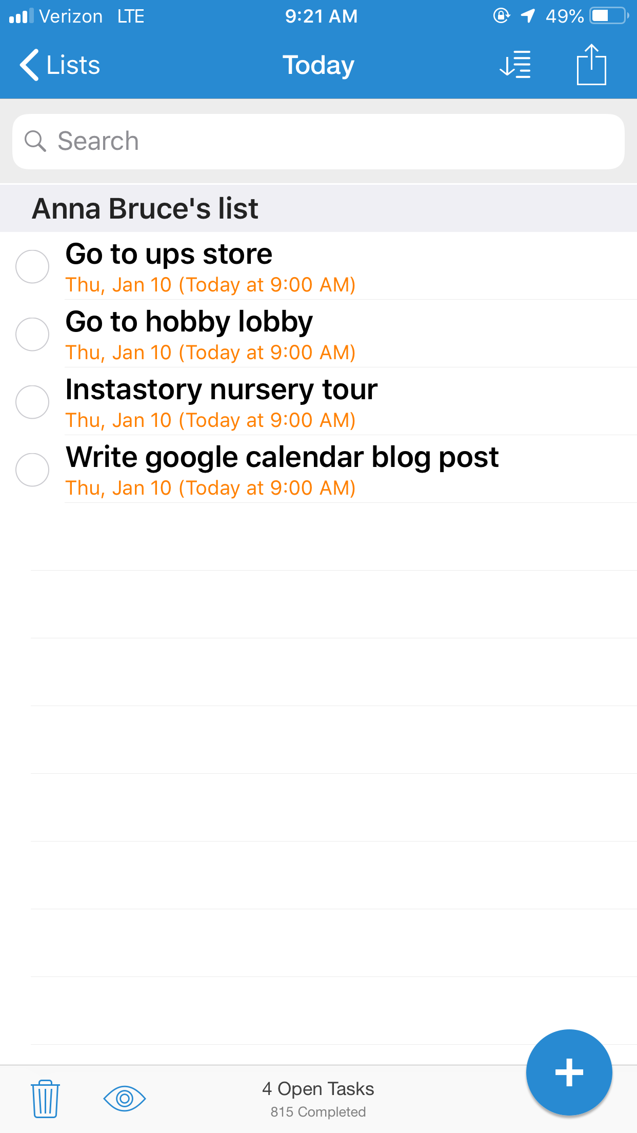 5. The last thing I want to mention that’s super cool is using your computer (or the Google Tasks) app, you can add to-do’s that you want to accomplish that day and check them off as you complete them. I’m such a list person, but have trouble keeping up with paper, so this makes my life so much more organized! And who doesn’t get satisfaction from checking something off a list, am I right? This is the task app version: